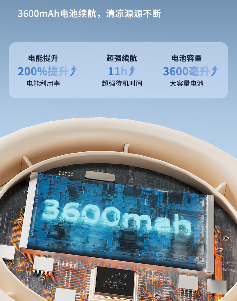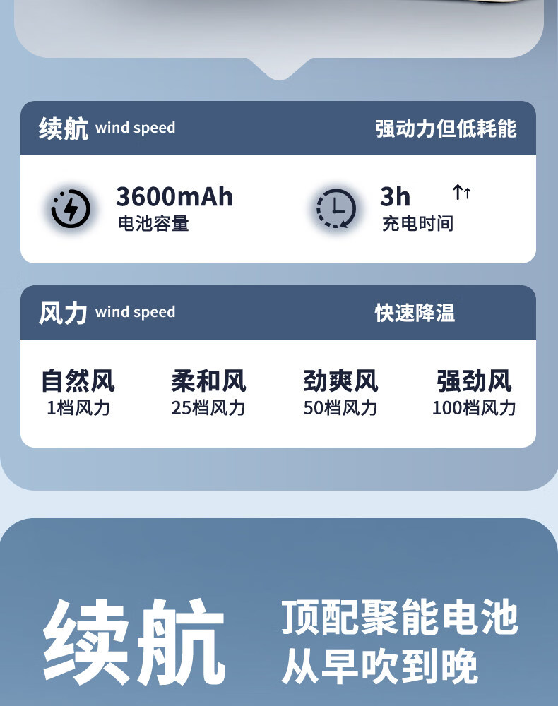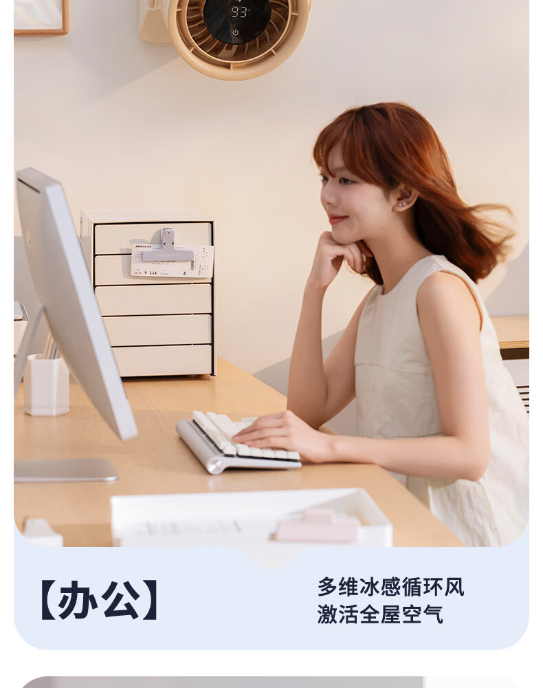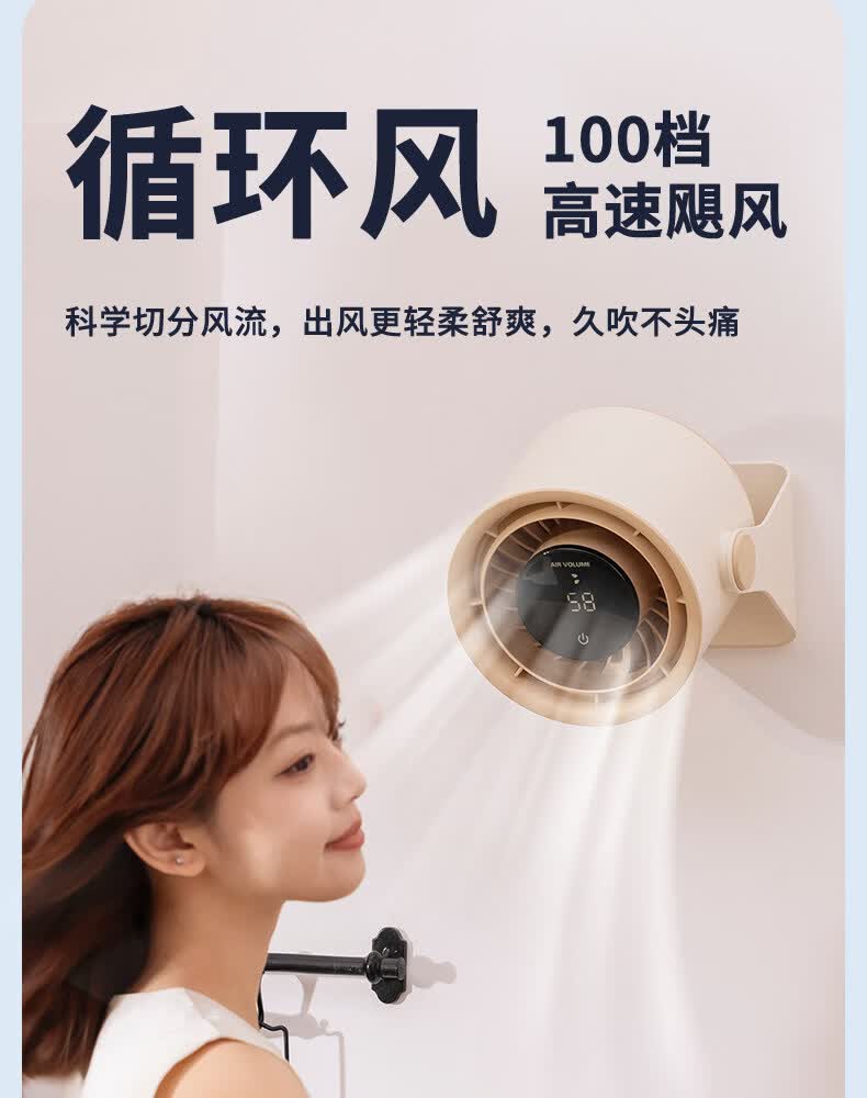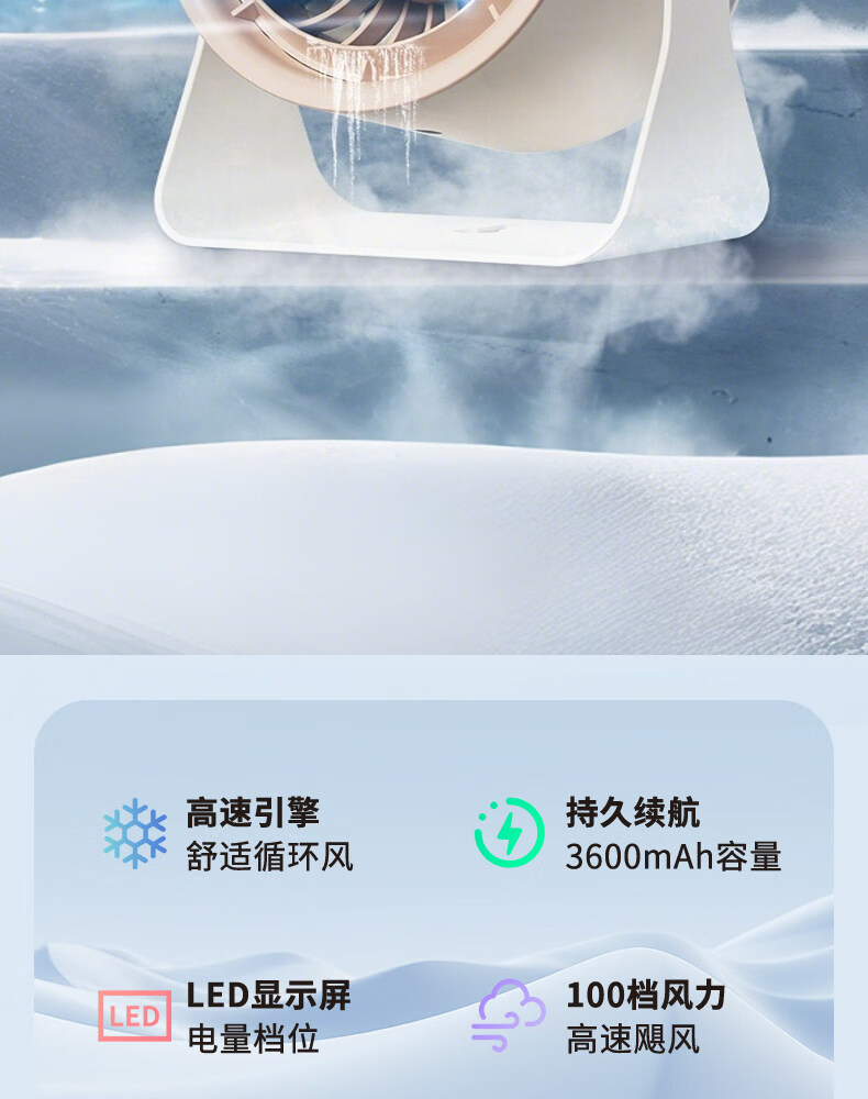 艾美特(AIRMATE)静音大风力循环电风扇USB壁挂台扇宿舍家用 【3600mAh】AH33台壁两用风大音轻100档无极调速 3600mAh