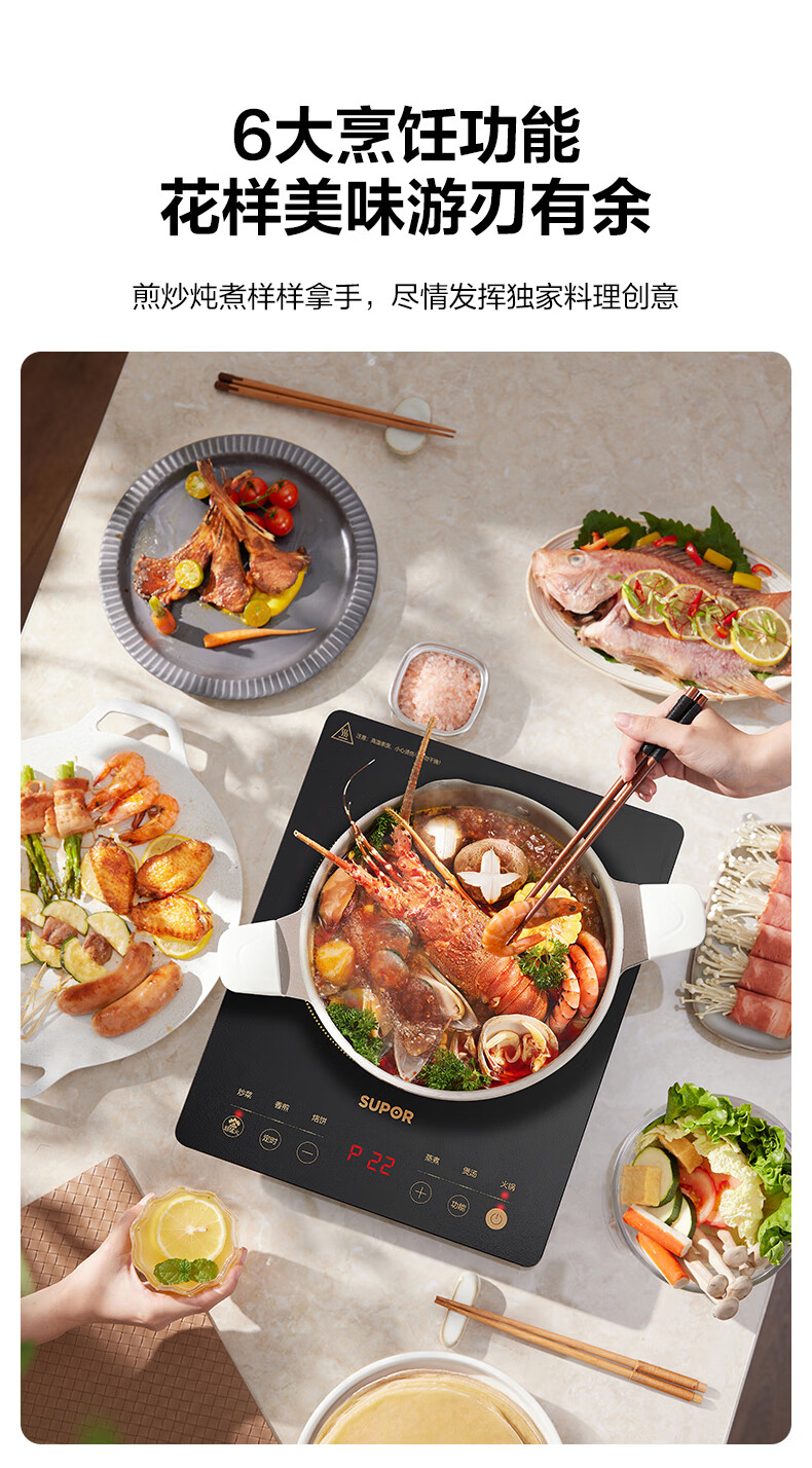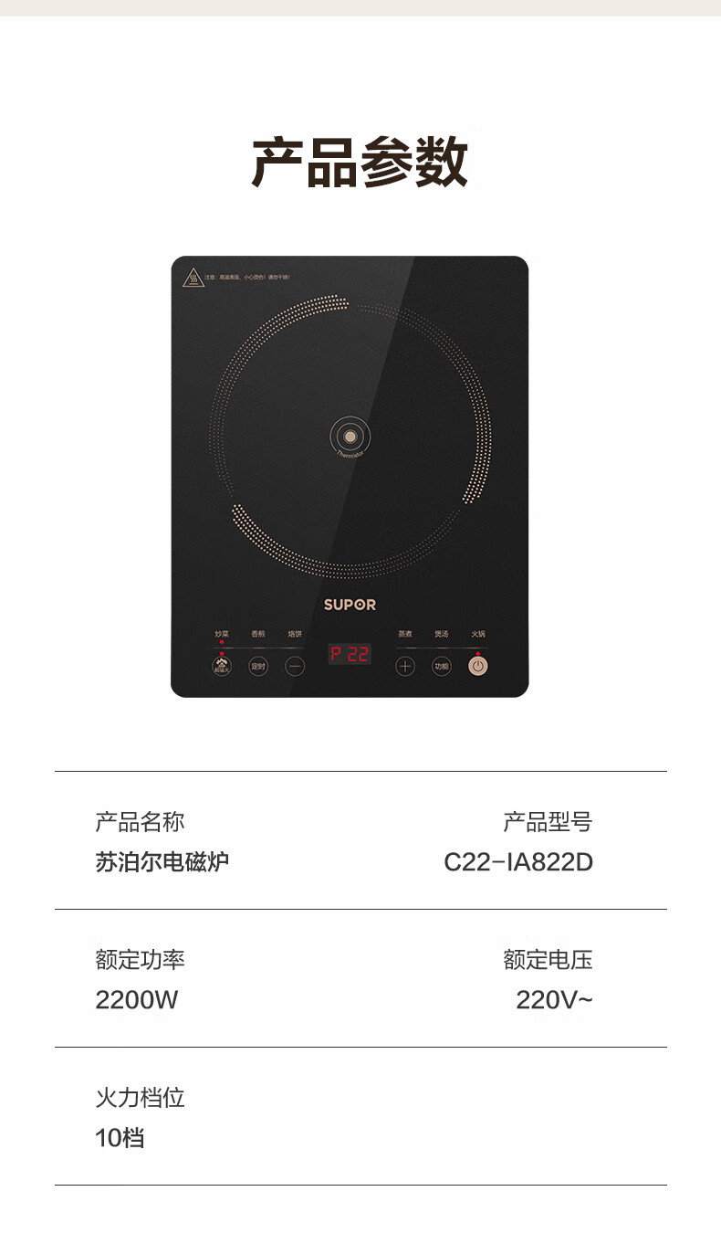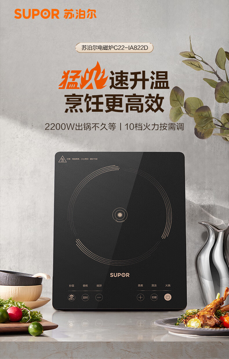 苏泊尔(SUPOR)超猛火家用电磁炉电陶炉新型电磁灶大功率电池炉电炉炒菜一体面板超薄火锅炉C22-IA822D