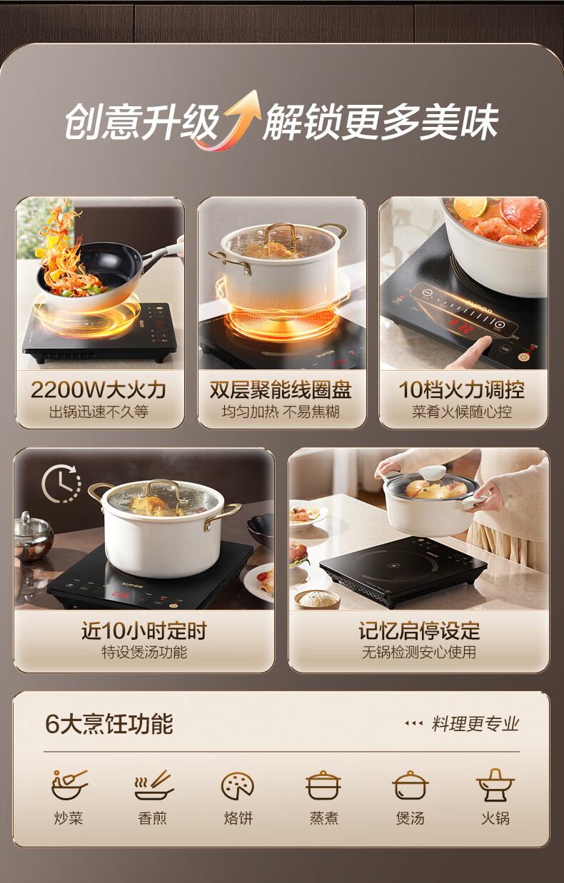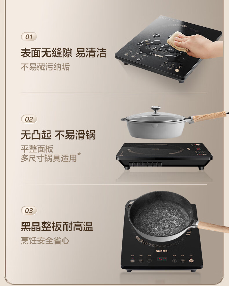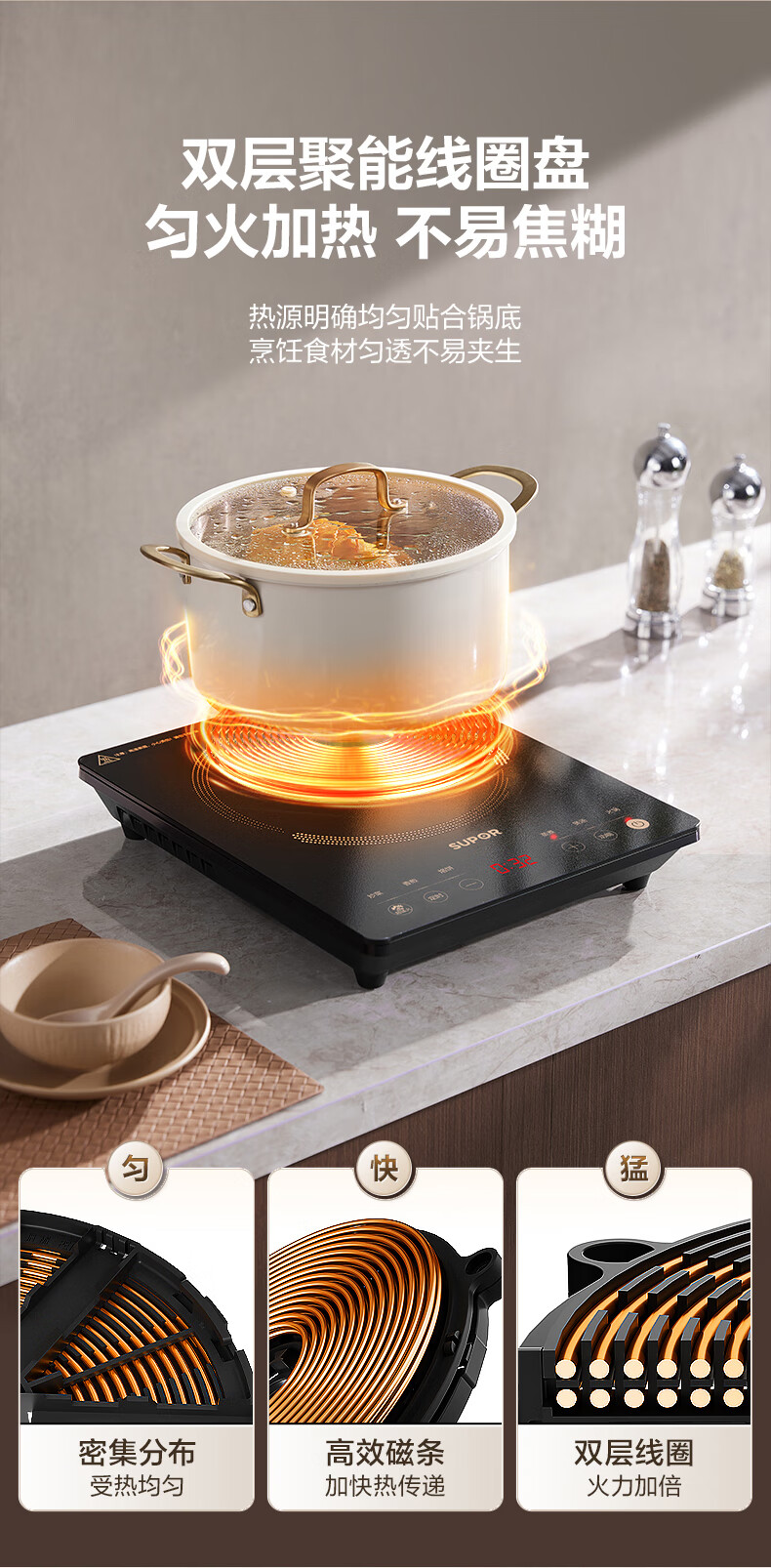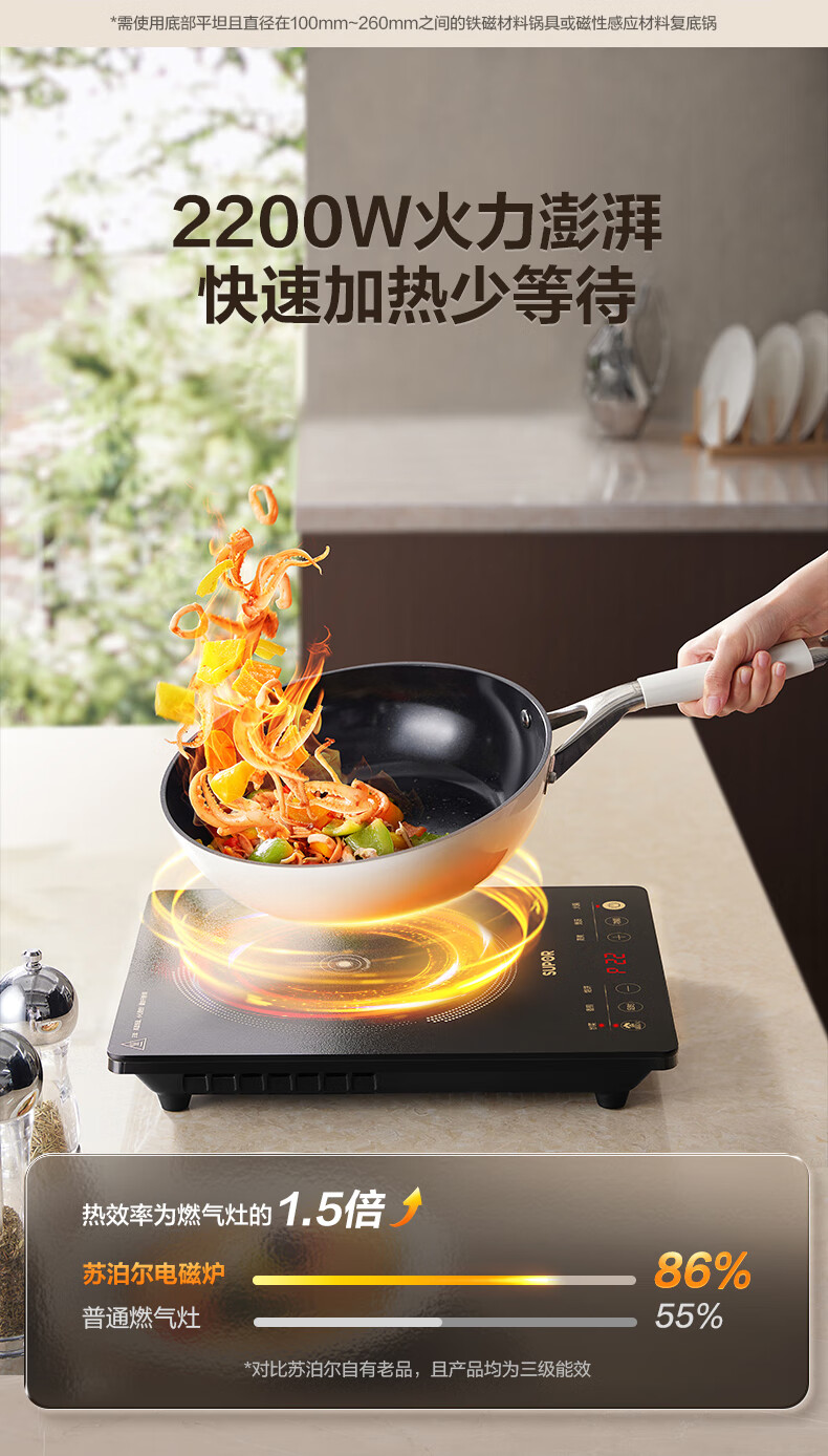 苏泊尔(SUPOR)超猛火家用电磁炉电陶炉新型电磁灶大功率电池炉电炉炒菜一体面板超薄火锅炉C22-IA822D