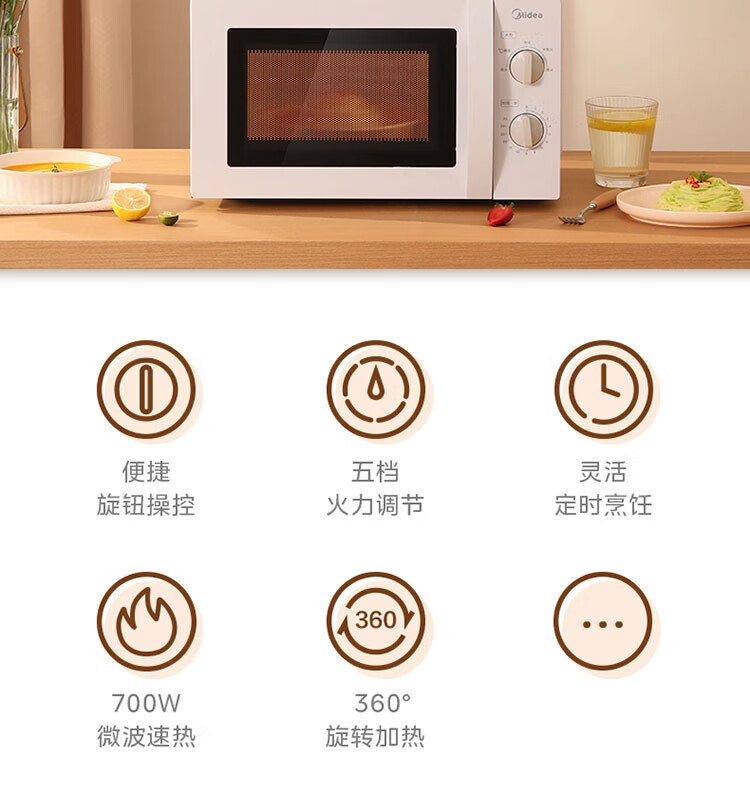 美的美的微波炉家用20L多功能机械转盘式MM721NG1-PS