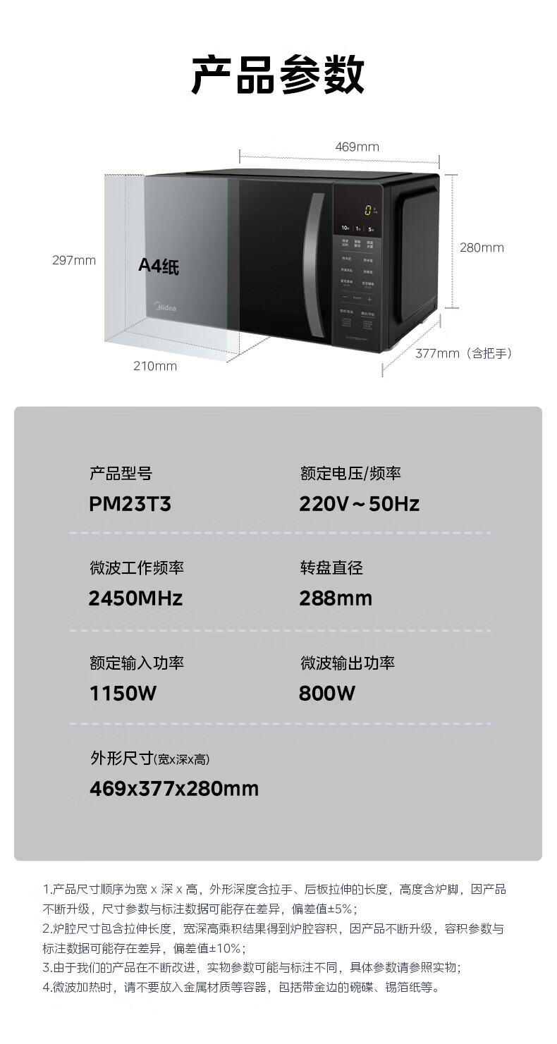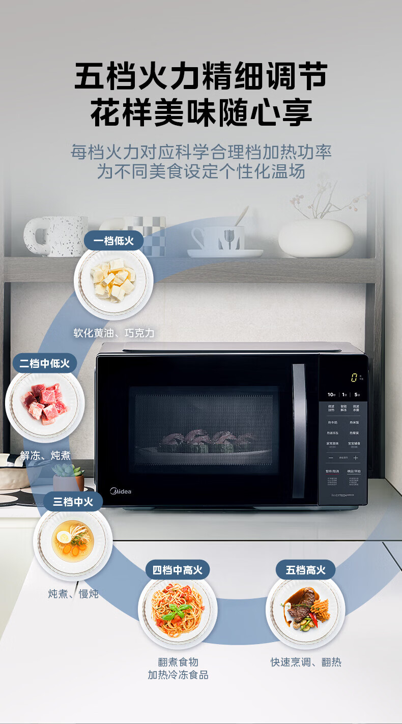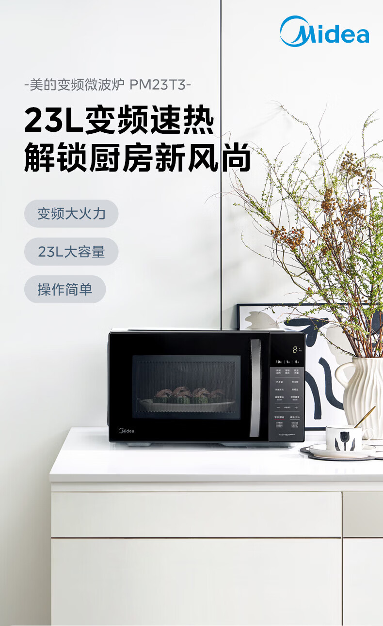美的(Midea)微波炉家用变频商用23升800W变频转盘饭店便利店解冻学校宿舍酒店智能新款 PM23T3
