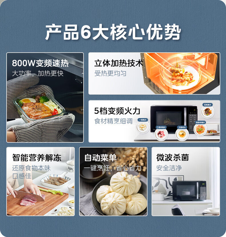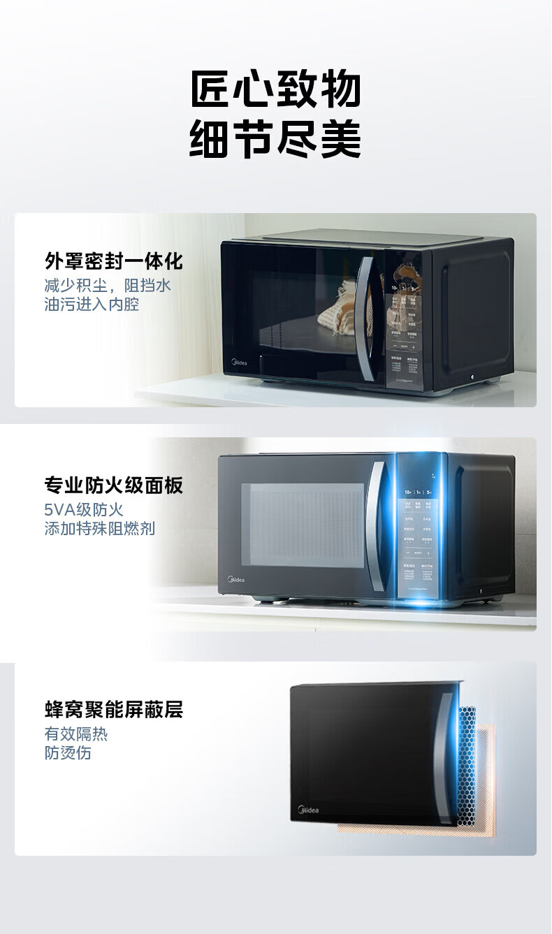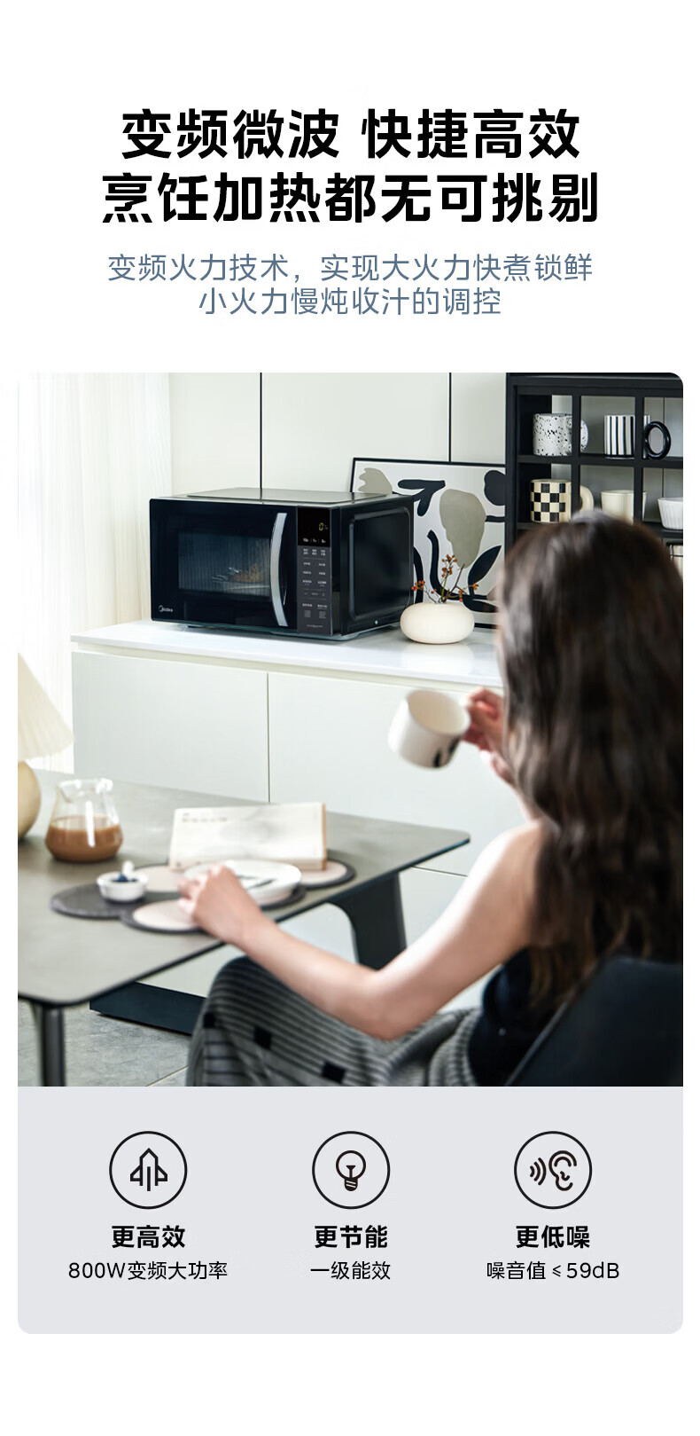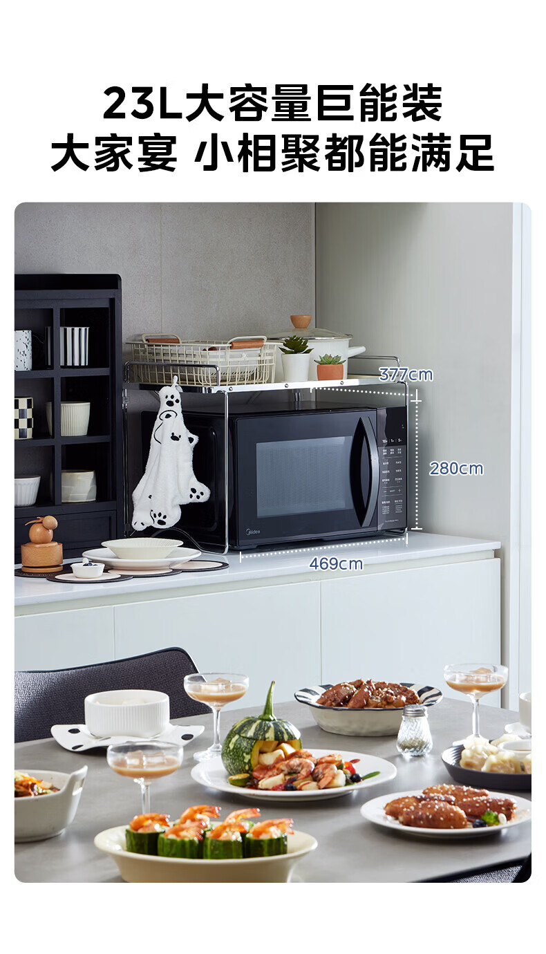 美的(Midea)微波炉家用变频商用23升800W变频转盘饭店便利店解冻学校宿舍酒店智能新款 PM23T3
