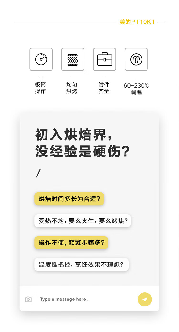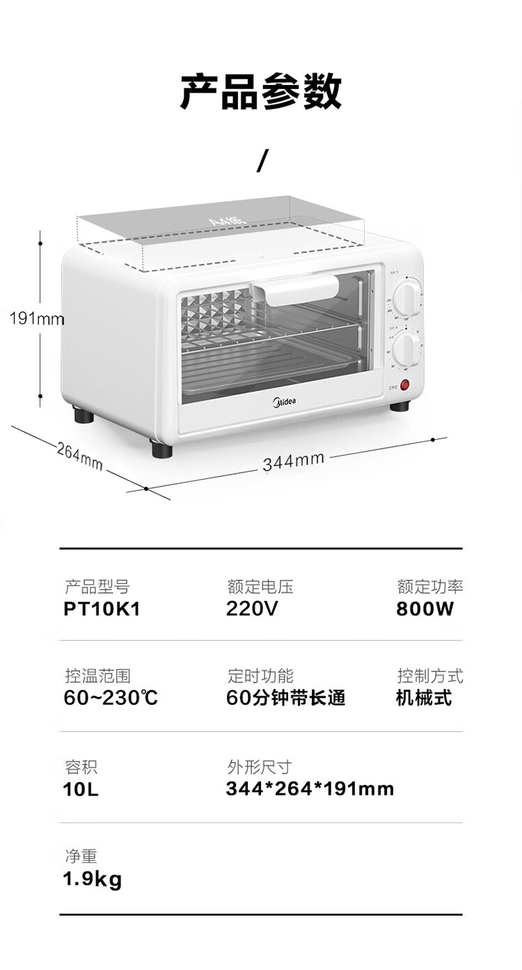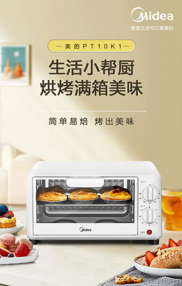 美的(Midea)家用多功能烘焙电烤箱 PT10K1