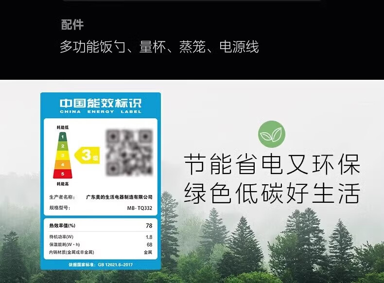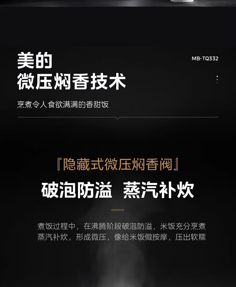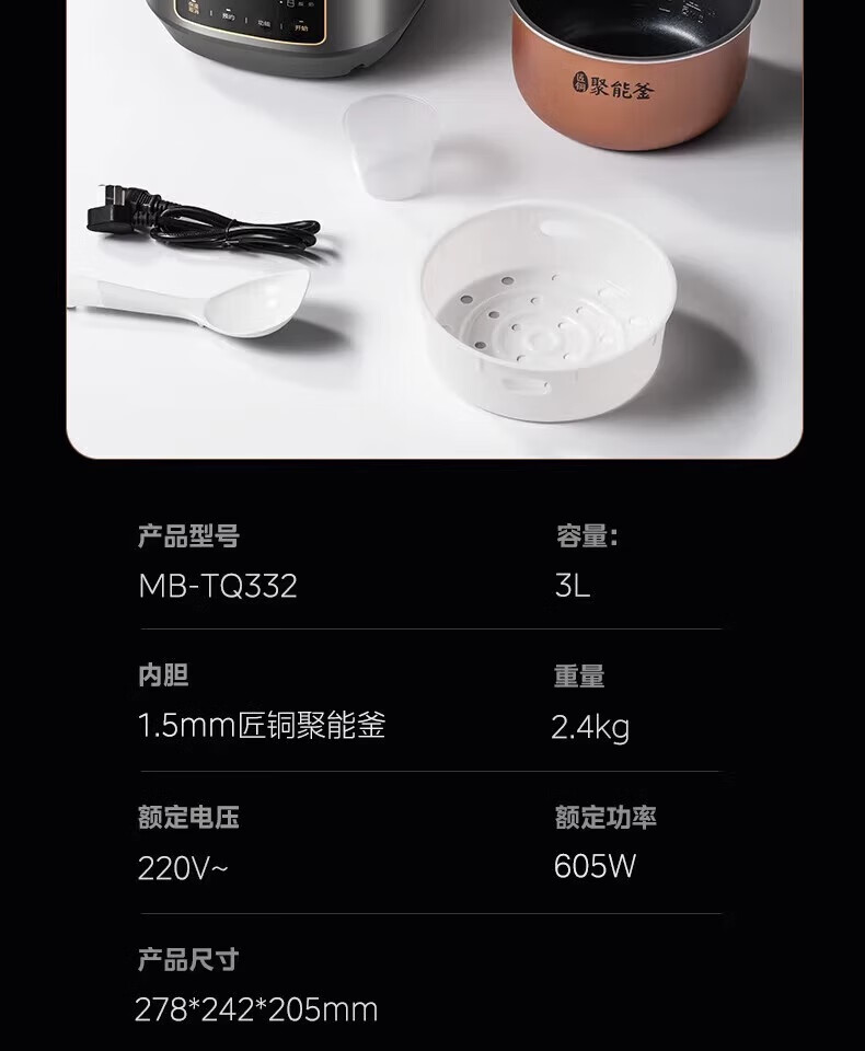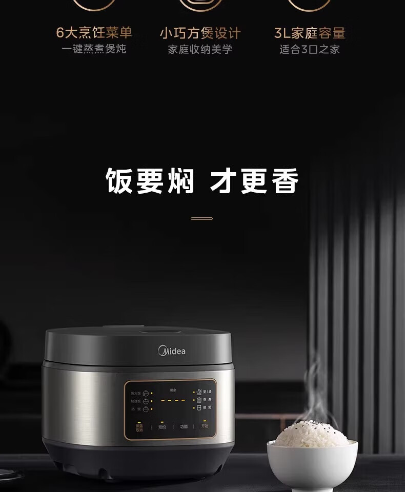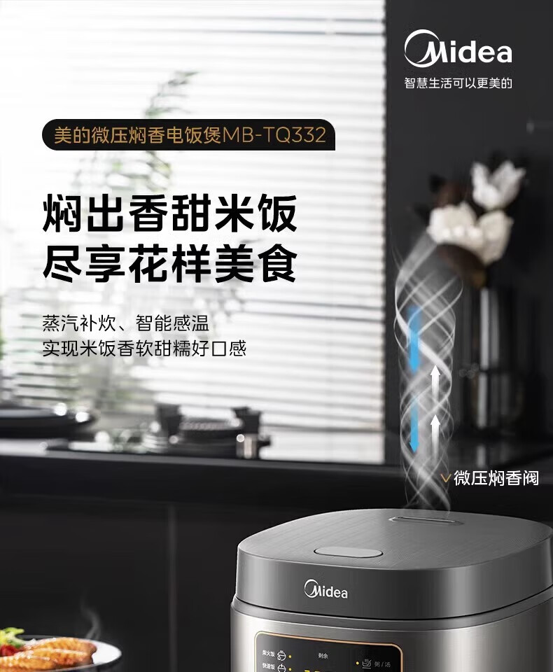 美的 电饭煲家用智能电饭锅小型多功能电饭煲不沾煮饭锅 MB-TQ332