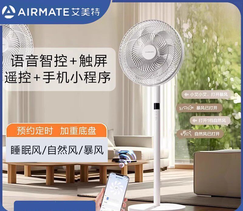 艾美特空气循环扇家用强力语音遥控离子净化直流立式落地电风扇